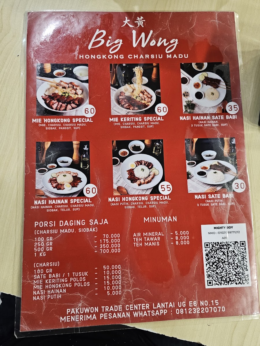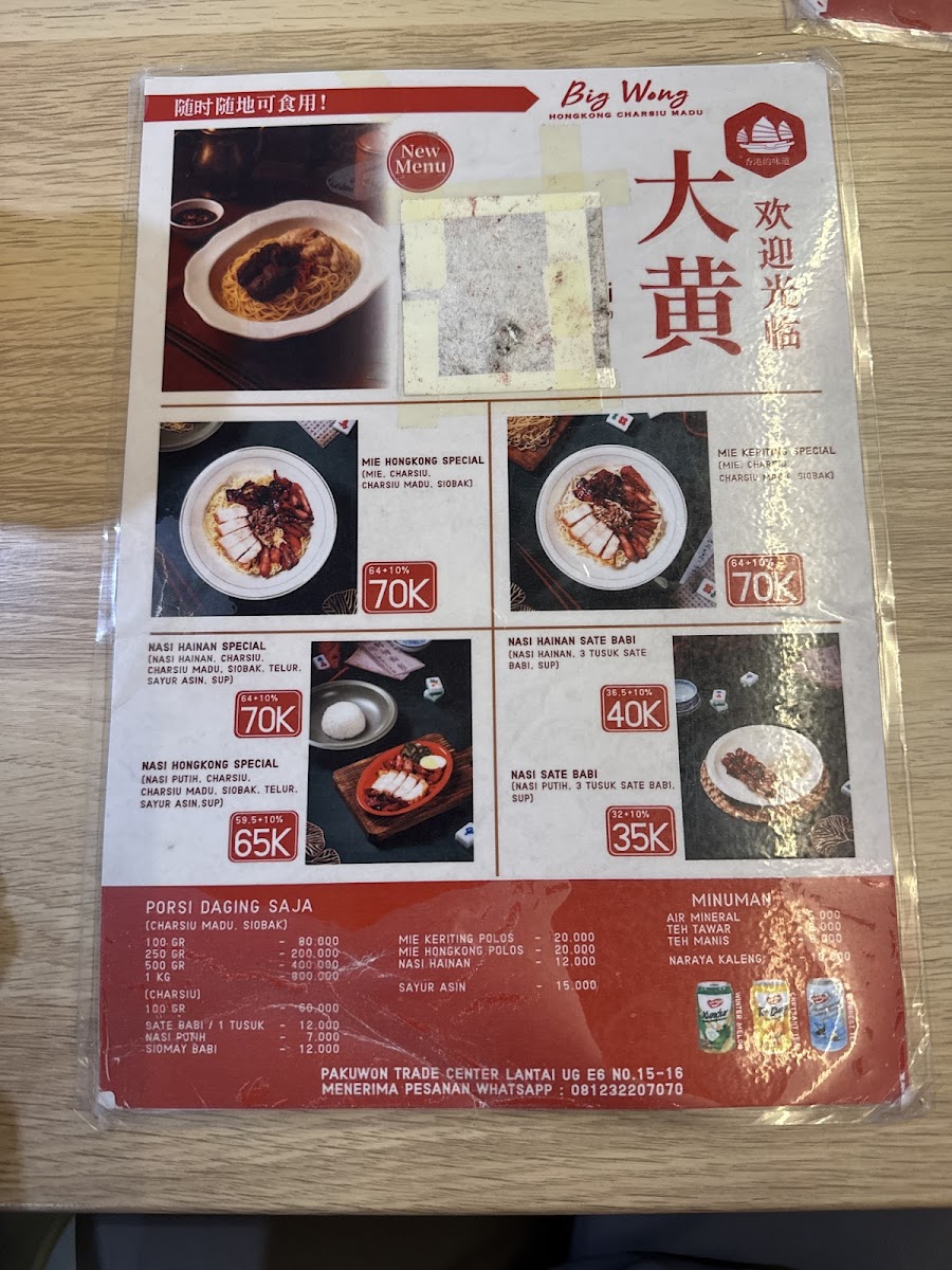 Welcome to Big Wong Hongkong Charsiu Madu, a barbecue gem nestled in Surabaya's vibrant PTC food court. Specializing in delectable Chinese barbecue, this restaurant shines particularly with its renowned Charsiu Madu, or honey pork. Customers rave about its perfect balance of sweetness, complemented by the unmistakable charred grill flavor. The tender texture is a crowd-pleaser, making it ideal for guests of all ages.